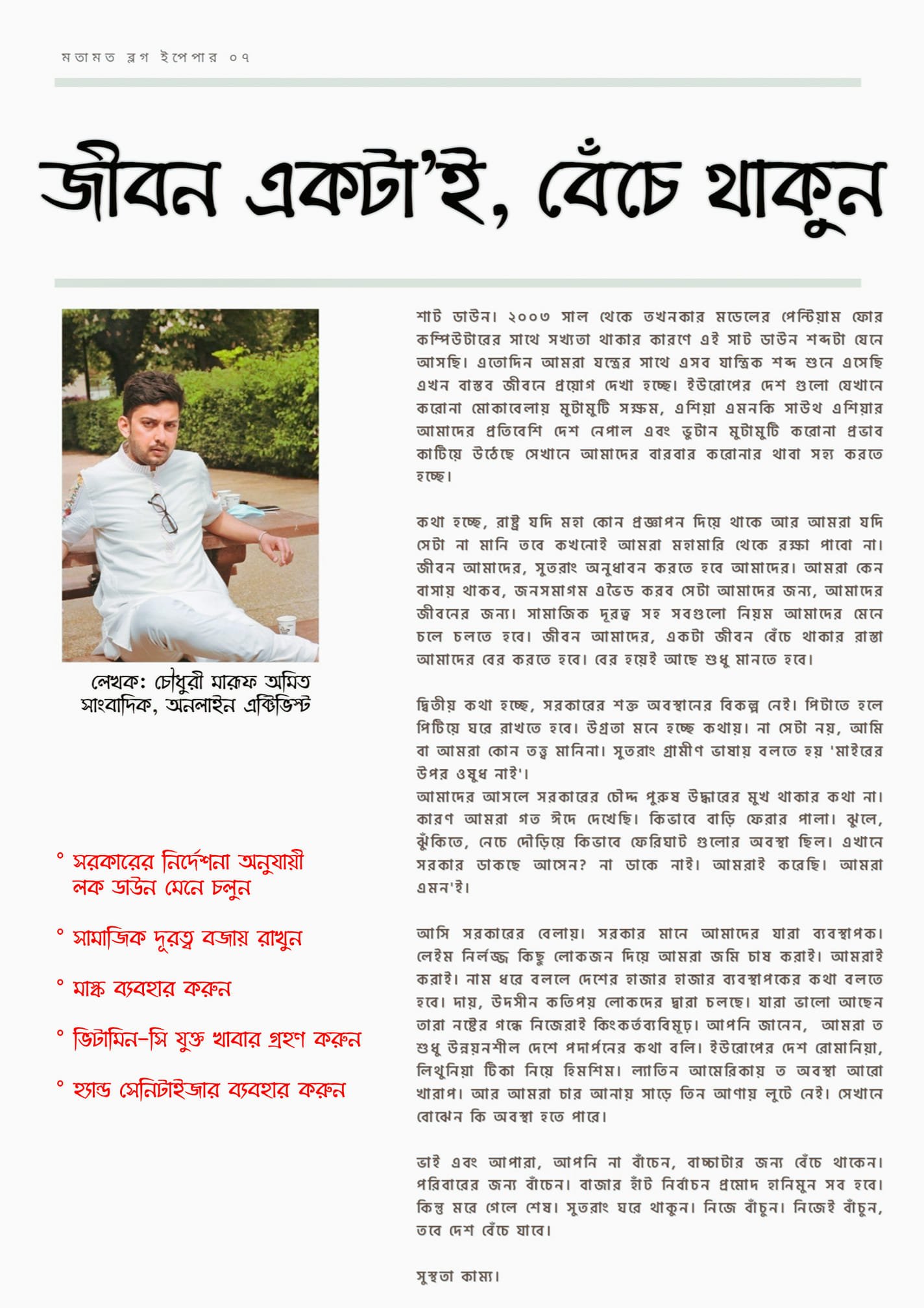 জীবন একটা'ই, বেঁচে থাকুন