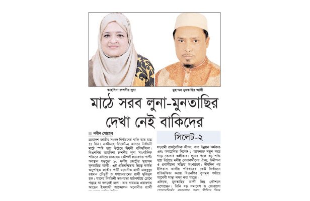 জানা গেছে, সিলেট-২ (বিশ্বনাথ-ওসমানীনগর) আসনে রাজনৈতিক মাঠে একদিকে বিএনপি মনোনীত ধানের শীষের প্রার্থী, নিখোঁজ বিএনপি নেতা এম. ইলিয়াস আলীর সহধর্মিণী তাহসিনা রুশদীর লুনা ধারাবাহিক কর্মসূচি ও সাংগঠনিক শক্তি দিয়ে নিজের অবস্থান আরও দৃঢ় করছেন। আর ১০ দলীয় জোট প্রার্থী খেলাফত মজলিসের মুনতাছির আলী জামায়াতে ইসলামী ও শরিক দলের নেতাদের নিয়ে অত্যন্ত কৌশলী ও হিসেবি প্রচারণার মাধ্যমে নিজস্ব ভোটব্যাংক তৈরির চেষ্টা চালিয়ে যাচ্ছেন।