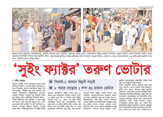 ত্রয়োদশ জাতীয় সংসদ নির্বাচনকে সামনে রেখে মর্যাদাপূর্ণ সিলেট-১ (সিলেট সিটি কর্পোরেশন ও সদর উপজেলা) আসনে রাজনৈতিক উত্তাপ দিন দিন বাড়ছে। দীর্ঘদিন ধরে এই আসনটি নানা কারণে আলোচনার কেন্দ্রবিন্দুতে থাকলেও এবারের নির্বাচনে সবচেয়ে বড় আলোচ্য বিষয় হয়ে উঠেছে তরুণ ভোটারদের বিস্ময়কর উত্থান।